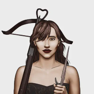 She was a little away from having enough money saved to buy her way out and set up her own brothel, when a drunk nobleman slashed her face, using her as a substitute for the rival he couldn’t touch. The Madame, seeing the opportunity to dispose of a potential rival herself, provided only a nonmagical healer while Stria lay in and out of consciousness, ensuring her face healed horribly scarred. By the time she recovered, no magic could cure her, and she would never work again. Bitter, she used the money she had left from paying for her healing to buy into the Thieve’s Guild and trained as an assassin. With an outfit and her makeup, she could become anyone. She specialized in using her body to seduce her targets, then killing them once they were vulnerable in a bedroom. Her attacker was her first hit. She killed him with a knife under the chin into his brain while he sprawled on the bed, expecting a bored widow he just met in a ballroom to do something naughty to him.