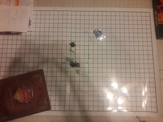 The party heard chanting from behind one of the doors ahead of them. Warin countered with a Bless spell.