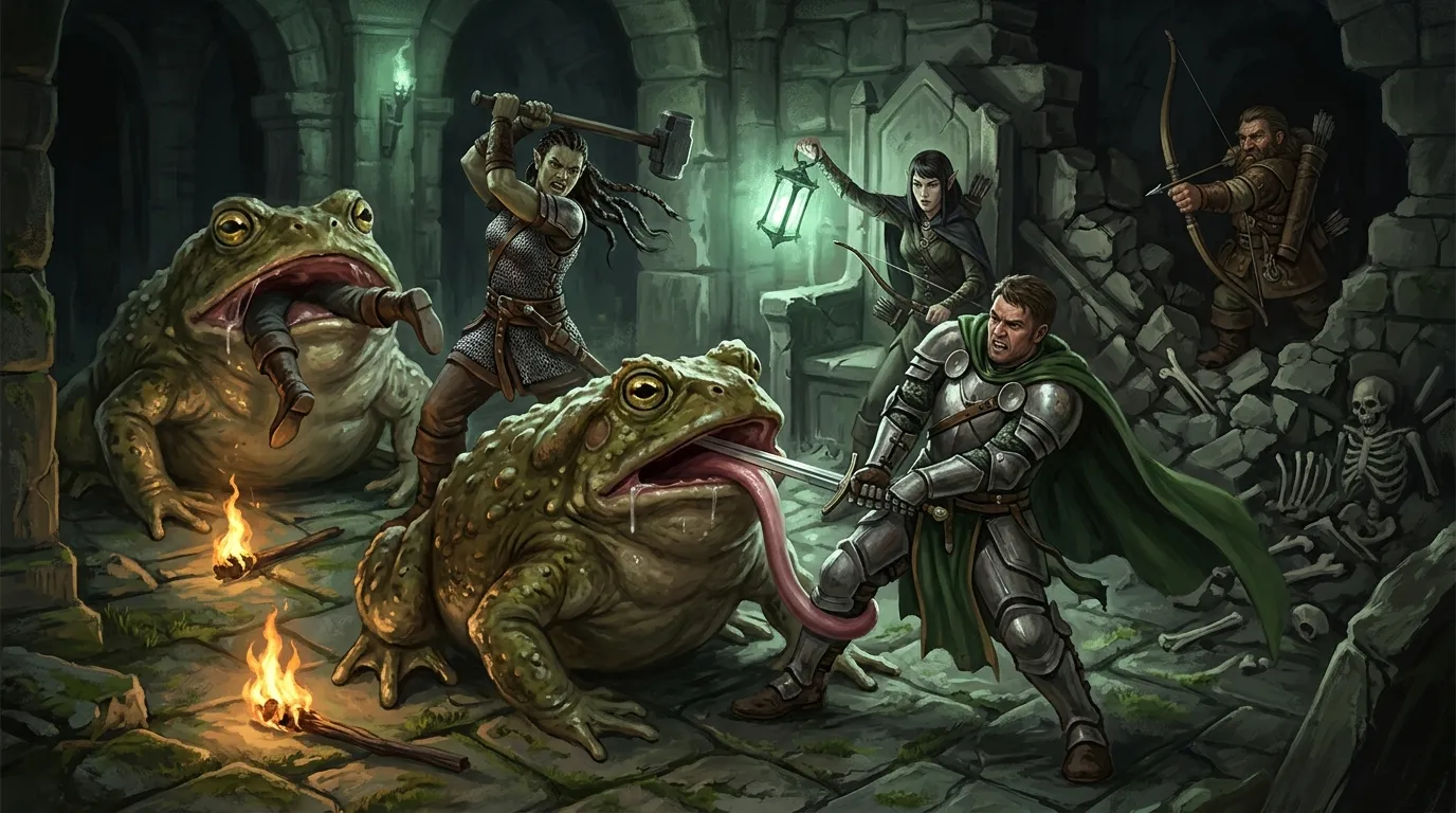 Clarice, from her hiding place behind the broken throne, did not attack. Bancroft could see the calculation on her face: if she shot again, the toads would notice her, and if the toads noticed her, she had four hit points and a leather jerkin and a short bow that was not good at piercing toad hide. She stayed still. It was the right call. Bancroft knew it was the right call. He also knew that watching a thief make the right call while a friend bled was one of the more specifically infuriating experiences a cleric could have.