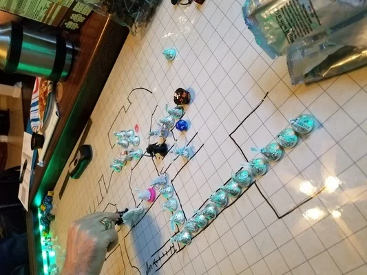 While the faint sound of chanting filled the air nearby, Leah turned her bow towards the goblins approaching her position from the mining operation. After clearing the corridor with a hair of arrows, she caught a motion out of the corner of her eye and spun to shoot at the cleric who had darted across the corridor entrance while she was looking away. Her first arrow glanced off his armor, leaving a mere scratch. Her second shot never came – her quiver was empty! Cursing, Leah put her bow away and drew her short sword. The next wave of goblins would be up close and personal.